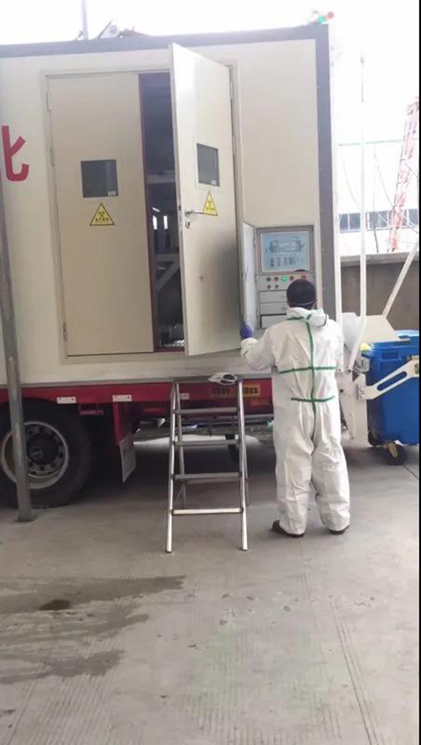 在孝感期間,董壘和隊友們實行兩班倒,每天最少工作12個小時,有時18個小時,甚至24個小時。據(jù)他回憶,2月份醫(yī)療廢物翻了好幾倍,整個庫房爆滿,大量的醫(yī)療廢物堆在廠子里,比一層樓還要高,廠子里堆不下了,就運往臨時處置點。由于新冠肺炎醫(yī)療廢物具有更強的感染性,長時間暴露有二次污染的危險,在高強度的工作下,操作人員極度疲勞,壓力巨大。