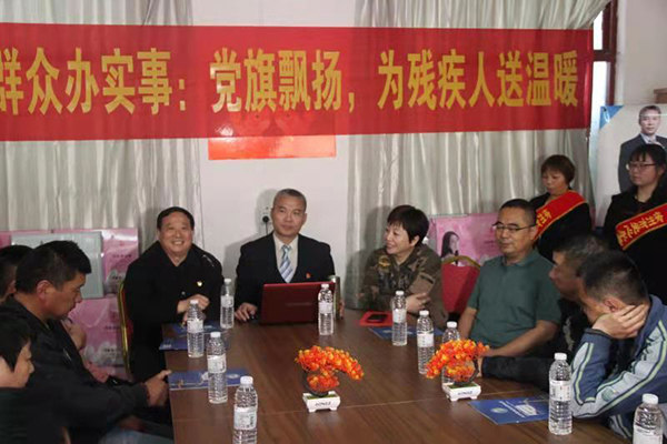 黃淮網(wǎng) 為弘揚中華民族扶弱助殘的傳統(tǒng)美德,營造全社會扶殘助殘的濃厚氛圍,在全國第三十一個“助殘日”來到之際,5月13日,江蘇省崗位學雷鋒標兵惠本杰攜手江蘇圓點律師事務所張孝明主任、徐州壽百年醫(yī)藥科技有限公司涂宏偉董事長、愛心永春志愿者服務中心李勇理事長共同前往徐州市銅山區(qū)利國鎮(zhèn)殘疾人之家開展“黨建搭起‘愛心橋’ 義務助殘暖人心”活動。徐州好人郭小藝主持本次活動。