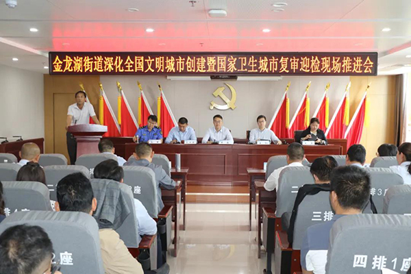 當(dāng)天下午,金龍湖街道召開深化全國文明城市創(chuàng)建暨國家衛(wèi)生城市復(fù)審迎檢現(xiàn)場推進會。