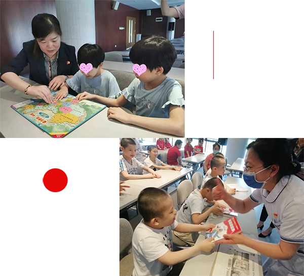 通過(guò)這次“家訪”,為更好更優(yōu)促進(jìn)孤殘兒童康復(fù)治療提供了支撐和保障。大家還為孤殘兒童贈(zèng)送“六一”紅色禮物:《長(zhǎng)征的故事》《雷鋒的故事》《閃閃的紅星》《小英雄雨來(lái)》,以及中國(guó)地圖及世界地圖磁鐵拼圖。晏燕書記還親切陪著孩子們一起拼中國(guó)地圖,并告訴他們北京是中國(guó)的首都,臺(tái)灣是中國(guó)的領(lǐng)土。通過(guò)送“紅色健康”活動(dòng),潛移默化將愛(ài)國(guó)、愛(ài)黨精神、革命精神植于童心,讓紅色的種子在孤殘兒童心中生根發(fā)芽,汲取紅色營(yíng)養(yǎng),傳承紅色基因,增強(qiáng)他們對(duì)黨的認(rèn)識(shí),知黨史、感黨恩,引導(dǎo)孤殘兒童樹立正確的價(jià)值觀,陽(yáng)光自信走向未來(lái)。