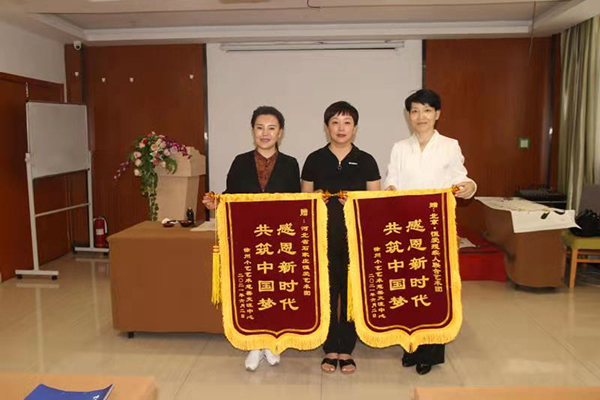 6月2日,最美退役軍人惠本杰,愛心永春志愿者服務中心李勇,徐州小藝慈善中心郭小藝,愛心人士唐曉等帶著慰問品看望了正在辛勤排練的演職人員。大家達成了今后的合作協(xié)議,并相互頒發(fā)了結(jié)對共建單位證書。李勇、郭小藝向藝術團贈送了錦旗,致以崇高的敬意。藝術團也向李勇老師發(fā)出了參與此次演出的邀請。