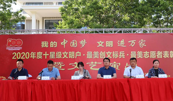 黃淮網(wǎng)  6月4日下午,徐州經(jīng)開區(qū)大廟街道2020年度“十星級文明示范戶”“十星級文明戶”“星級文明戶”暨第四屆“最美創(chuàng)文標(biāo)兵”“創(chuàng)文優(yōu)秀志愿者”表彰大會在市民廣場舉行。
