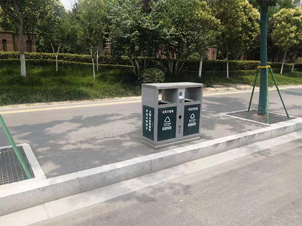 分類果皮箱與周圍環(huán)境融為一體
