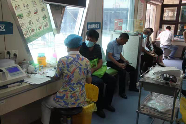酷熱的盛夏卻無法超越他們獻(xiàn)血的熱情,隨著填表、驗血、初檢、登記、采血等一個個步驟的完成,獻(xiàn)血工作有條不紊開展,活動現(xiàn)場秩序井然。他們中有巾幗不讓須眉,看上去纖弱實則堅強的女同志;也有熱衷于無償獻(xiàn)血,多年未曾間斷的獻(xiàn)血老兵。熱血汩汩,傳遞愛心。