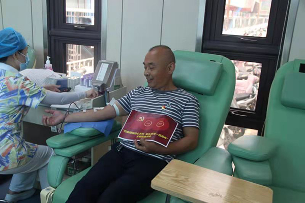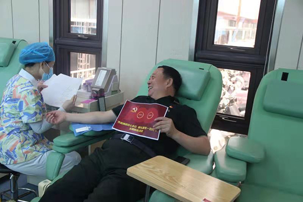 活動現(xiàn)場還有一個熟悉而又忙碌的身影:江蘇省模范退役軍人、江蘇省崗位學(xué)雷鋒標(biāo)兵、徐州市無償獻(xiàn)血促進先進個人,本次活動的發(fā)起人——惠本杰。他說:多年來,徐州市銅山礦鄉(xiāng)關(guān)系協(xié)調(diào)中心大力踐行社會主義核心價值觀,積極弘揚獻(xiàn)血救人的無私奉獻(xiàn)精神,并將愛心公益活動作為我單位的文化建設(shè),每年“七一”建黨節(jié)和新春佳節(jié)來臨之際都會組織開展無償獻(xiàn)血活動,至今已堅持8年了。在建黨100周年之際,參加獻(xiàn)血,挽救生命,這是非常光榮的,很有意義。大家用一顆顆誠摯的愛心和一袋袋鮮紅的熱血,詮釋了初心永紅——雖不能像革命先輩們一樣拋頭顱灑熱血,但在和平年代踐行黨史學(xué)習(xí)教育熱血鑄就初心以實際行動服務(wù)群眾、服務(wù)社會。希望通過這種有特殊意義的行動,弘揚獻(xiàn)血救人的奉獻(xiàn)精神,讓無償獻(xiàn)血活動深入人心,形成全社會廣泛支持、參與無償獻(xiàn)血的良好氛圍。