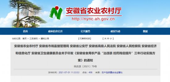 近日,為切實解決禁限用藥物違法使用、常規(guī)農(nóng)獸藥殘留超標(biāo)等問題,安徽省農(nóng)業(yè)農(nóng)村廳、省市場監(jiān)督管理局、省公安廳、省高級人民法院、省人民檢察院、省經(jīng)濟和信息化廳、省衛(wèi)生健康委員會在全省聯(lián)合實施食用農(nóng)產(chǎn)品“治違禁控藥殘促提升”三年行動。