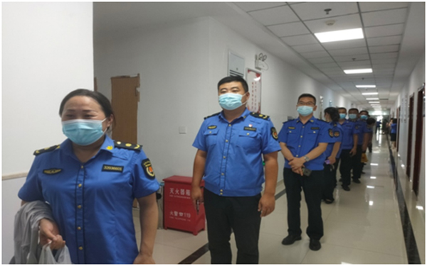 城管執(zhí)法人員有序進行檢測