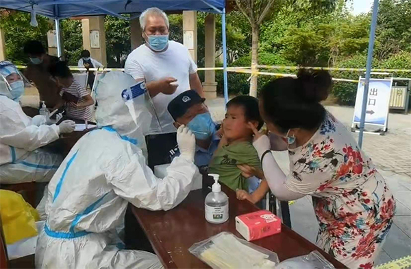 黃淮網(劉曉楠 宋慶根) 8月18日,在徐州經開區(qū)金山橋街道全員核酸檢測應急演練的大戰(zhàn)中,徐州經開區(qū)金山橋石橋派出所社區(qū)民警湯占國在美好匯鄰灣核酸檢測采樣點執(zhí)勤期間,一名七八歲左右的男童在檢測區(qū)域因害怕一直抗拒檢測,緊閉雙唇并要強行離開現場,他的母親也勸阻不了孩子,眼看后面排的隊伍越來越長,湯占國趕忙來到檢測區(qū),蹲下來握住男孩的手,男孩一開始激烈反抗,湯占國耐心安撫說:“這么熱的天,孩子你已經排了這么久的隊伍,還差最后兩秒就結束了,不做不就可惜了嗎?你是男孩子,要勇敢!”