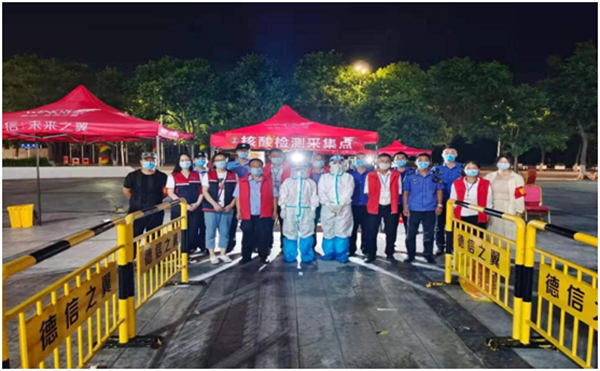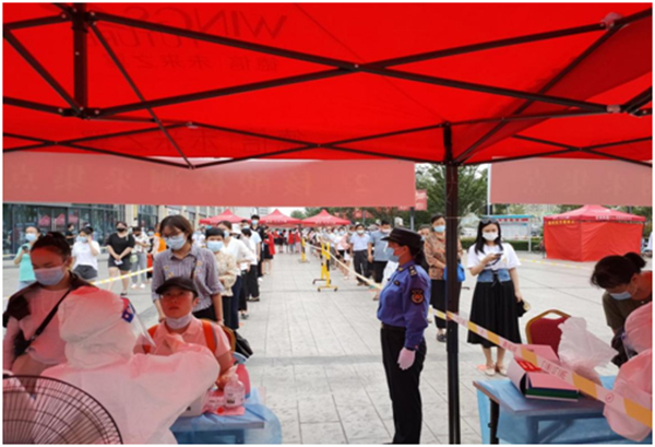 城管執(zhí)法人員維護(hù)核酸檢測現(xiàn)場秩序
