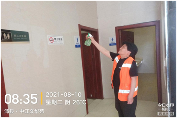 環(huán)衛(wèi)人員認(rèn)真做好公廁消殺工作