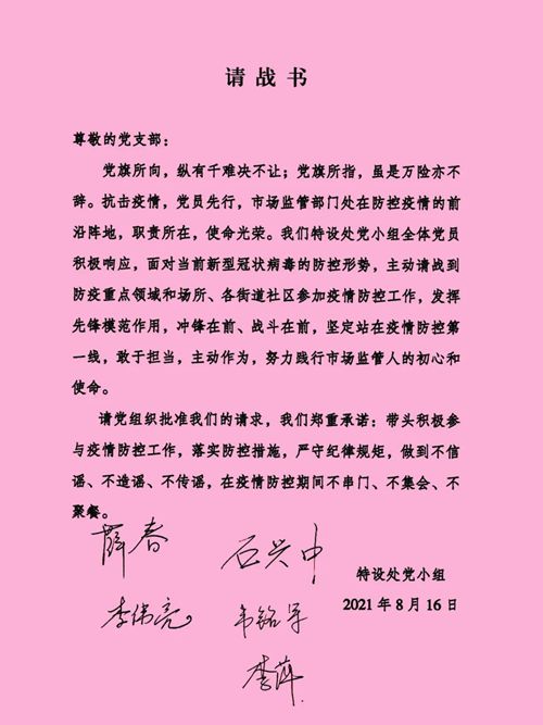 特設(shè)處黨小組請(qǐng)戰(zhàn)書(shū)