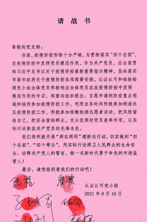 認(rèn)證認(rèn)可處黨小組請(qǐng)戰(zhàn)書(shū)