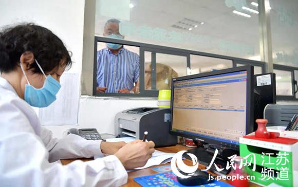 東海縣中醫(yī)院醫(yī)保辦工作人員為群眾辦理醫(yī)保業(yè)務(wù)。張開虎攝