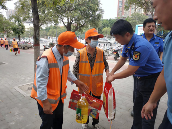 城管局工作人員向環(huán)衛(wèi)工人發(fā)放慰問(wèn)品