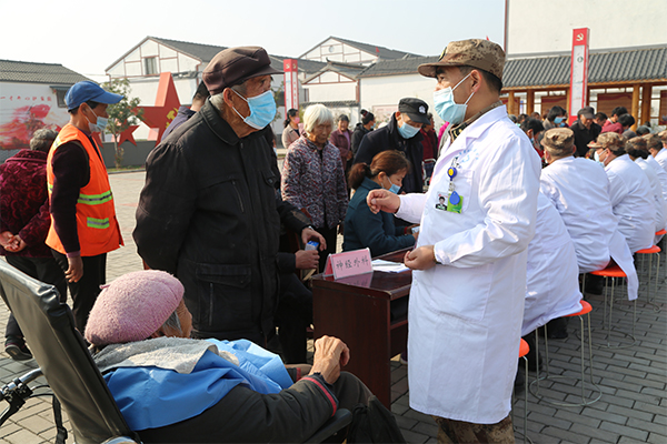 黃淮網(wǎng)(開祥啟 曹昆倫) 11月19日,享有紅色革命老區(qū)的沛縣大屯街道宋莊村的文化廣場人頭攢動,人們紛紛圍坐在廣場中央,向來自第七十一集團軍醫(yī)院的眼科、消化科、心內(nèi)科、婦產(chǎn)科、普通外科、心胸外科、骨科、神經(jīng)外科等10余名專家問診。