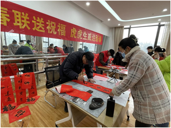 “千門萬戶曈曈日,總把新桃換舊符”——春節(jié)是中華民族重要的傳統(tǒng)節(jié)日,而春聯(lián)是優(yōu)秀的傳統(tǒng)文化形式,自古以來,春聯(lián)內容就飽含著對幸福生活的向往以及對家風傳承的展示,寫春聯(lián)、貼春聯(lián),是中國人過春節(jié)一項極其重要的年俗活動。在新春佳節(jié)到來之際,徐州市云龍區(qū)大龍湖街道組織了寫春聯(lián)、送祝福系利活動,更是將黨員冬訓與贈送春聯(lián)、弘揚傳統(tǒng)文化結合起來,幫助黨員在實踐中更加深刻理解理論知識,著力提升黨員冬訓課實效,營造了祥和幸福的濃濃氛圍。