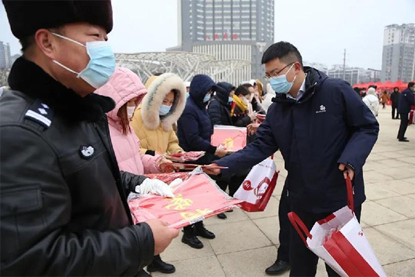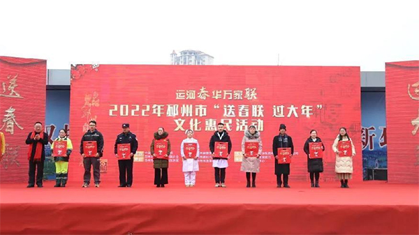 黃淮網(wǎng) 2022年1月23日上午,由中共邳州市委宣傳部、邳州市文聯(lián)、邳州市文體廣電和旅游局共同主辦的“運河春華萬家聯(lián)”2022年邳州市“送春聯(lián) 過大年”文化惠民活動在銀杏廣場正式啟動。邳州農(nóng)商銀行作為重要協(xié)辦單位應(yīng)邀出席活動。