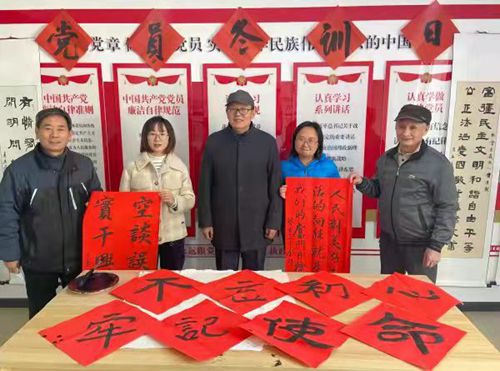 社區(qū)黨委書記周振介紹:“書畫,作為中華文明的符號(hào)和國粹,是傳承中華文化的載體,也是中華文化的精髓,展現(xiàn)了中華民族的文化風(fēng)貌。我們把優(yōu)秀傳統(tǒng)文化植入黨員冬訓(xùn)活動(dòng),為廣大黨員提供了一道獨(dú)特的“文化快餐”。我們今天能夠在這里盡情書畫的幸福生活都是靠無數(shù)革命先烈用自己的鮮血換來的。萬科城社區(qū)還將繼續(xù)發(fā)揮黨員們的聰明才智,豐富黨員冬訓(xùn)的方式方法。”
