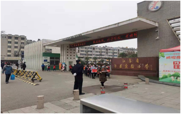 城管執(zhí)法人員做好上學(xué)時(shí)段校園疫情防控值守工作