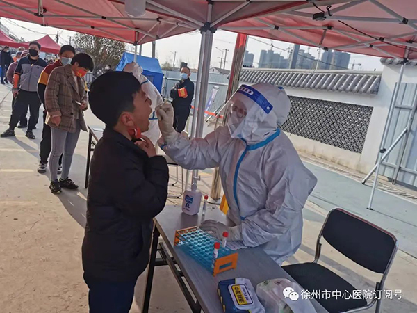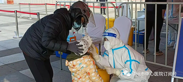 全民核酸采樣期間,工作量很大,比如前幾天在三十四中的采樣點(diǎn),我們4名工作人員,2個(gè)通道,從早6點(diǎn)開始工作到下午4點(diǎn),采樣3010人。一線人員非常辛苦,但是一聲核酸檢測令下,大家紛紛‘請戰(zhàn)’,匯集成一片‘彭城白’,初春的寒冷,阻擋不了逆行者的腳步。