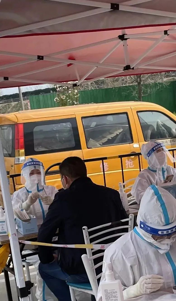 “根據(jù)醫(yī)院安排,3月28日晚12點(diǎn)起帶領(lǐng)20人的隊(duì)伍,每天早上4:30起床,早晨5:20從醫(yī)院集中出發(fā),6:30開始分組進(jìn)行核酸采樣。上午工作為集中采樣和現(xiàn)場督導(dǎo)(指導(dǎo)采樣點(diǎn)規(guī)范進(jìn)行各項(xiàng)工作),下午集中采樣結(jié)束后為不方便出門的村民上門采集,對黃碼人員專門采集。隊(duì)伍整體每日采集1.2萬人次,人均600-700人次。”