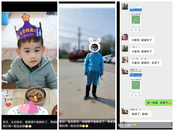 4月3日,是晏羽的兒子小王子的四歲生日,也是他離家奮戰(zhàn)在“疫”線的第6天。自全員核酸檢測工作開展以來,85后的晏羽便在村部開了工作證明,甚至連一件換洗的衣物都沒來得及帶上便踏上了抗“疫”之途。他說,我可能是個“壞爸爸”,但作為一名黨員、一名黨務(wù)工作者,我理應(yīng)站在最前沿,這既是我的職責使命,也是在踐行我的入黨誓言,我相信兒子長大以后一定可以理解,我相信我們很快就會團聚。