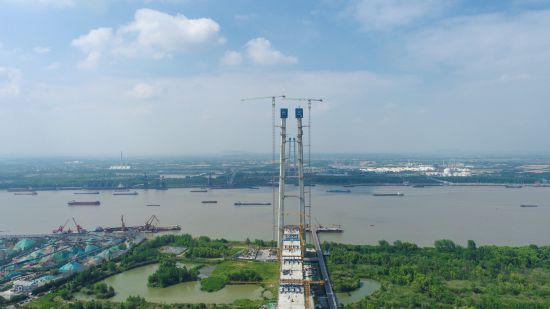 南京仙新路長江大橋:南北主塔封頂