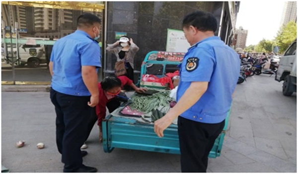 城管執(zhí)法人員早市值班,為攤販們提供“馬路”服務(wù)