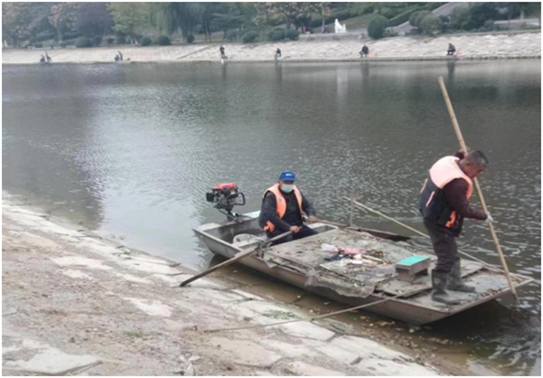 環(huán)衛(wèi)工人張井亮和張書金在清理河道