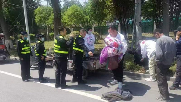 “人命關(guān)天,抓緊時(shí)間先救人!”徐華臨抓緊招呼執(zhí)法隊(duì)員上前。在過(guò)程中,徐華臨了解到,原來(lái)電動(dòng)三輪車的車主載著80多歲的哥哥去看病,二人行駛至此處時(shí),車主去面粉店詢問(wèn)價(jià)格,便將三輪車?吭诼愤。結(jié)果另一輛過(guò)往的三輪車將車上的老人撞倒在地,待群眾發(fā)現(xiàn)時(shí)肇事者已經(jīng)逃跑。