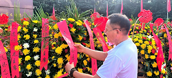 在毛澤東銅像廣場,向毛澤東主席銅像敬獻(xiàn)花籃,大家向毛主席銅像鞠躬敬禮,表達(dá)對(duì)偉大領(lǐng)袖毛主席的無限敬仰和深切懷念