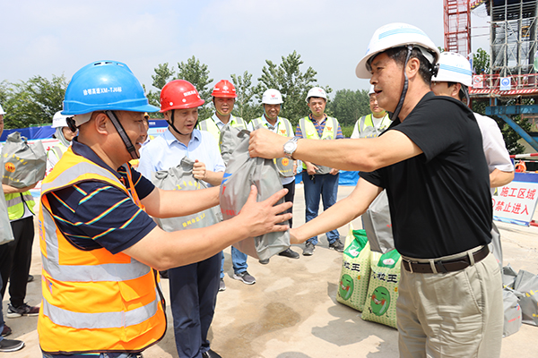 黃淮網(wǎng)(羅劉 趙崢) 8月2日,徐州市總工會副主席徐濤一行來到徐明高速賈睢段(徐州東部繞越高速公路)XM-TJ6標(biāo)項(xiàng)目經(jīng)理部,慰問酷熱天氣下仍堅(jiān)守施工一線的建設(shè)者,給他們送來了防暑降溫物資。