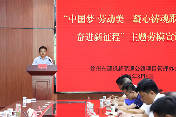 黃淮網(wǎng)(趙崢) 為全面貫徹落實(shí)黨的二十大精神,進(jìn)一步弘揚(yáng)勞模精神、勞動(dòng)精神、工匠精神,8月9日,徐州市交通運(yùn)輸局工會(huì)與徐州東部繞越高速公路(徐州至明光高速公路賈汪至睢寧段)項(xiàng)目辦共同開(kāi)展了“中國(guó)夢(mèng)·勞動(dòng)美——凝心鑄魂跟黨走 團(tuán)結(jié)奮進(jìn)新征程”主題勞模宣講活動(dòng)。