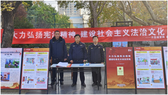 黃淮網(wǎng)(劉瑞) 今年12月4日是我國第十個國家憲法日,為進一步弘揚憲法精神,增強人民尊崇憲法、學習憲法、遵守憲法、維護憲法、運用憲法的行動自覺,營造全社會尊法學法守法用法的良好氛圍,沛縣城管局以“大力弘揚憲法精神,建設社會主義法治文化”這一主題,在沛縣好人廣場設立宣傳點位,積極開展國家憲法日宣傳活動。