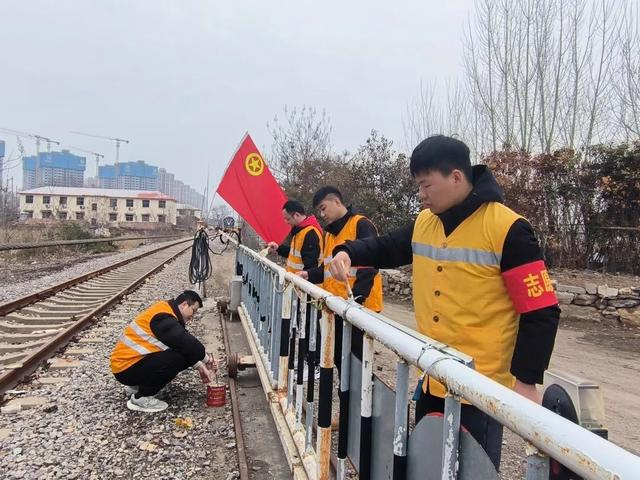 新鵬科技公司青年志愿服務隊到鐵路工務段開展“鐵路道口維護志愿服務”活動,為鐵路道口粉刷油漆、清理鐵軌雜物,保障鐵路安全運行。