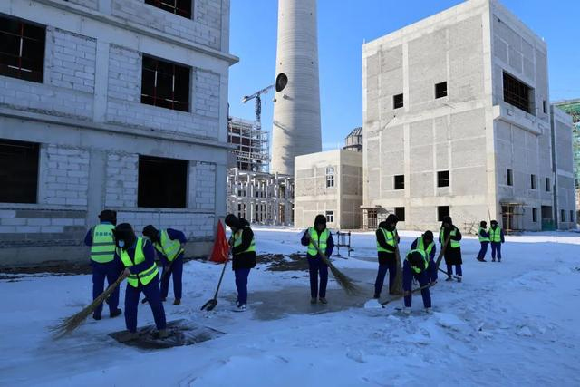 烏拉蓋地區(qū),寒風瑟瑟、冰雪未融。蘇能錫電公司青年手拿掃帚和雪鍬,頂風冒寒、步伐堅定走到項目現(xiàn)場,對廠區(qū)主干道積雪和汽機房、化學水房、集控樓內(nèi)的雜物進行清掃和整理,確保廠區(qū)環(huán)境整潔、道路暢通。江蘇威拉里新材料科技公司團總支也在園區(qū)開展了掃雪活動,開辟出一條通暢的道路。