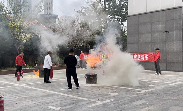本次演練活動共分為啟動儀式、地震疏散應(yīng)急演練、消防事故應(yīng)急疏散演練、滅火器操作技能演練、總結(jié)講話五個部分。在演練啟動儀式上,安全專家講解了地震疏散應(yīng)急演練和消防事故應(yīng)急演練的流程及注意事項,中心分管領(lǐng)導(dǎo)進行動員講話;地震疏散應(yīng)急演練以語音提示為地震發(fā)生信號,各樓層人員根據(jù)所在辦公室方位,分別就近從東西兩側(cè)應(yīng)急安全通道疏散撤離,疏散保衛(wèi)人員在各層樓梯口進行指揮,引導(dǎo)大家按照預(yù)案逃生路線快速、有序地疏散至安全地帶;消防事故應(yīng)急疏散演練模擬一間辦公室發(fā)生火災(zāi)事故并冒出濃煙,工作人員按響消防疏散警鈴,疏散保衛(wèi)組判斷火勢蔓延的方向,并在各層疏散引導(dǎo)人員撤離。疏散人員用濕毛巾捂住口鼻、彎腰貼近墻壁,從安全通道迅速有序進入安全地點;在隨后的滅火器操作技能演練中,安全員講解了滅火器操作使用方法并進行了現(xiàn)場示范,大家積極參與,按照滅火器使用動作要領(lǐng)進行了滅火實踐操作。