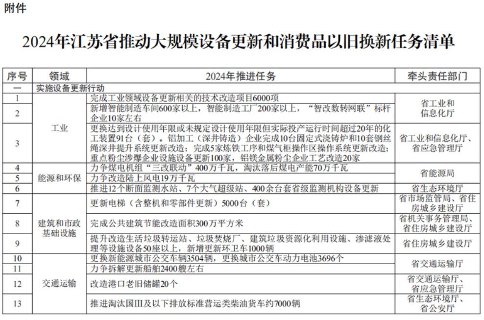 江蘇出臺行動方案 推動大規(guī)模設(shè)備更新和消費品以舊換新