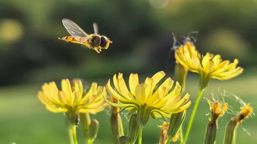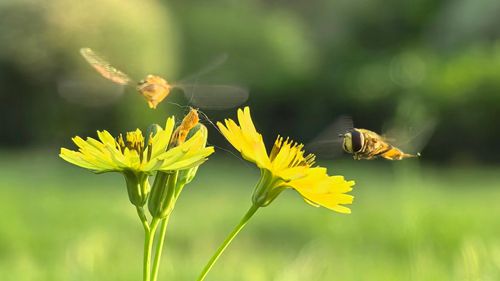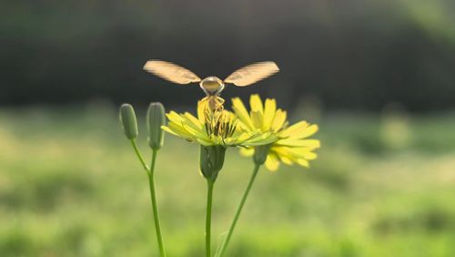 ◎細節(jié)塑造。我們來看看蜜蜂采花的生動細節(jié),在照片的一角,一只勤勞的蜜蜂正在忙碌地采集花蜜。這個細節(jié)不僅為照片增添了生氣,還寓意著大自然的和諧與生機。