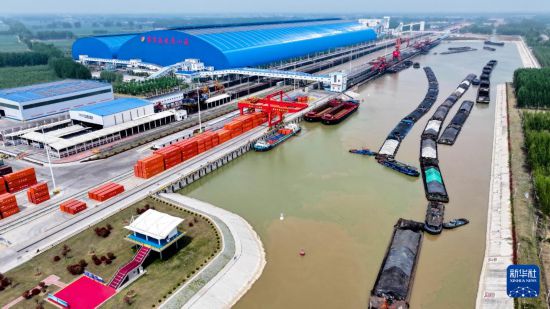 距離向西開行的濟(jì)鄭高鐵百公里外,長江以北最大的內(nèi)河港口梁山港一派繁忙,貨物在此乘船南下,最遠(yuǎn)可達(dá)重慶萬州、四川宜賓等地。