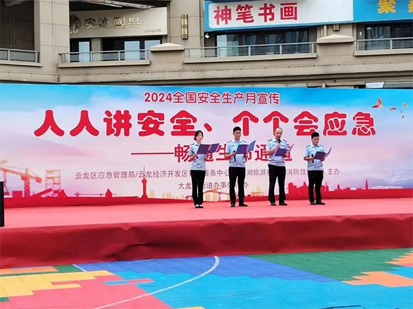 黃淮網(wǎng) 6月16日上午,由徐州市云龍區(qū)應(yīng)急管理局、云龍經(jīng)濟(jì)開發(fā)區(qū)管理服務(wù)中心、大龍湖旅游度假區(qū)消防救援大隊(duì)主辦,大龍湖街道辦事處承辦的2024年“安全宣傳咨詢?nèi)?rdquo;活動(dòng)在大龍湖街道中銳星尚城廣場舉行。云龍區(qū)應(yīng)急、消防、經(jīng)開區(qū)、公安派出所等相關(guān)部門及屬地辦事處負(fù)責(zé)同志,大龍湖街道辦事處各科室、各社區(qū)安全管理人員,轄區(qū)各生產(chǎn)經(jīng)營單位主要負(fù)責(zé)人參加活動(dòng)。