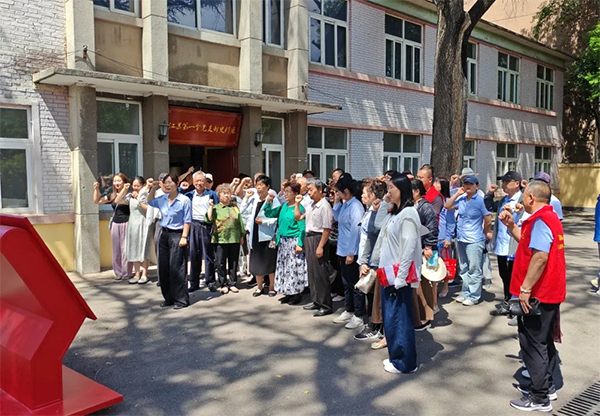 參觀完“八號門事件”舊址史料館后,參加這次活動的全體黨員,在史料館門前的廣場上,右手握拳過肩,面對鮮紅的黨旗,重溫了《入黨誓詞》。鏗鏘有力的誓詞聲,強(qiáng)烈震撼著在場的每一各黨員。一字一句,神圣而豪邁的錚錚誓言,表明了黨員同志們對中國共產(chǎn)黨的無限忠誠之決心,堅定了大家入黨初心和使命擔(dān)當(dāng)。