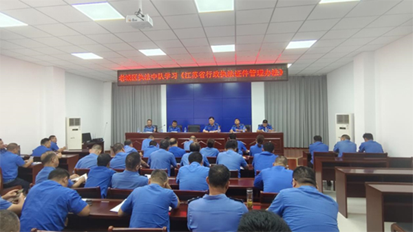 沛縣城管局老城區(qū)執(zhí)法中隊(duì)學(xué)習(xí)《江蘇省行政執(zhí)法證件管理辦法》