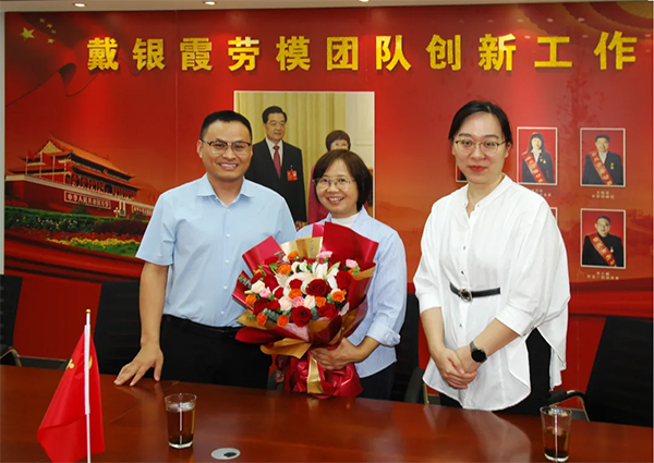 在彭城五交化公司“戴銀霞勞模團隊創(chuàng)新工作室”的會議室里,滿忠考副主席首先表明了代表徐州市總工會,在即將迎來新中國75周年華誕的這個特殊時刻,專程慰問全國勞動模范的來意。對戴銀霞同志為徐州的社會經(jīng)濟發(fā)展作出的突出貢獻表示感謝。同時,希望戴銀霞同志再接再勵,繼續(xù)發(fā)揚勞模精神、勞動精神、工匠精神,在國家經(jīng)濟建設(shè)和新質(zhì)生產(chǎn)力發(fā)展中,砥礪前行、再創(chuàng)輝煌。