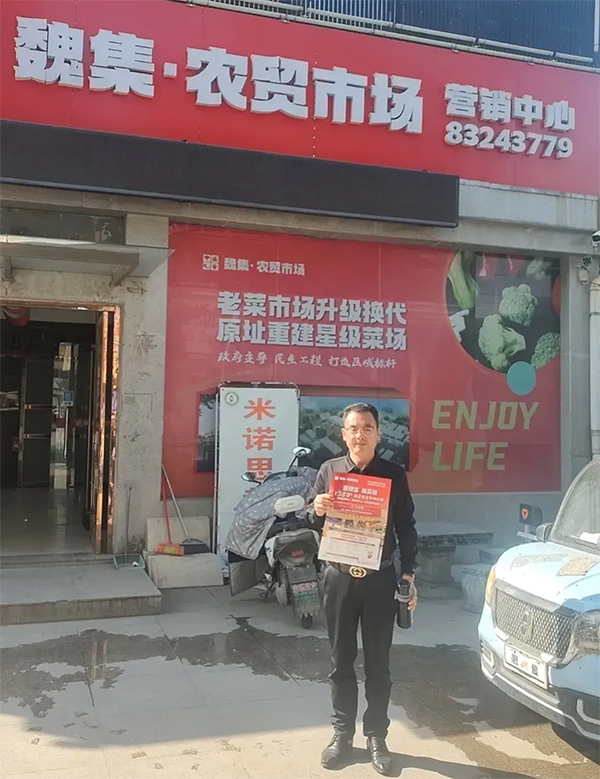 姚勝合先生在營(yíng)銷(xiāo)中心門(mén)口向大家展示了魏集農(nóng)貿(mào)市場(chǎng)的相關(guān)政府文件和法定手續(xù)。為了改變目前魏集集鎮(zhèn)形象和發(fā)展,徹底消除馬路市場(chǎng)不安全因素,魏集農(nóng)貿(mào)市場(chǎng)管理工作指導(dǎo)小組要求,待新市場(chǎng)建成后,所有涉農(nóng)業(yè)態(tài),將全部搬遷入新市場(chǎng)統(tǒng)一經(jīng)營(yíng)。