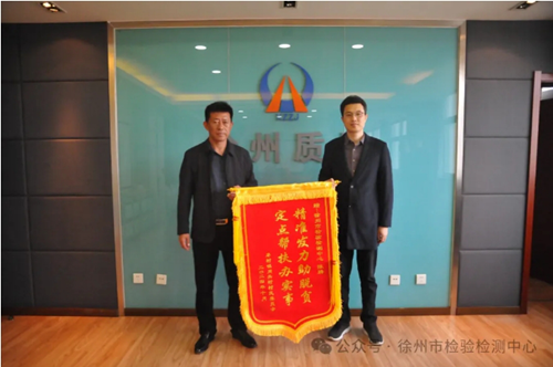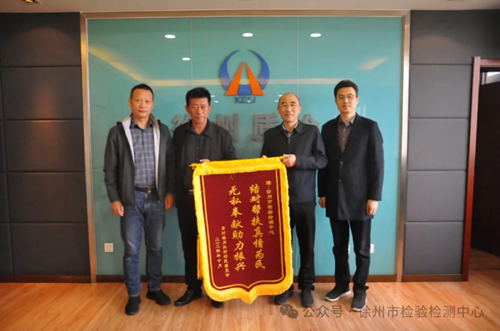 黃淮網(wǎng)(孫 楊) 11月12日,銅山區(qū)茅村鎮(zhèn)崗頭村黨支部書記岳剛一行來徐州市檢驗(yàn)檢測中心贈送錦旗,錦旗上書“結(jié)對幫扶真情為民 無私奉獻(xiàn)助力振興”,以感謝中心在鄉(xiāng)村振興幫促工作中對該村的大力幫助和支持。