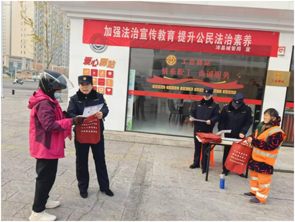 “學(xué)法在人、守法靠人、用法惠人。”此外,沛縣城管局還開展了憲法進(jìn)社區(qū)、進(jìn)企業(yè)活動。執(zhí)法人員深入社區(qū),與居民進(jìn)行交流,講解與日常生活密切相關(guān)的憲法知識,并結(jié)合社區(qū)環(huán)境整治工作,宣傳城市管理相關(guān)法律法規(guī),鼓勵居民共同參與社區(qū)環(huán)境維護(hù)。在工地,工作人員向工人們發(fā)放精心制作的憲法宣傳手冊,并結(jié)合實(shí)際案例,用通俗易懂的語言講解憲法賦予公民的權(quán)利,如勞動權(quán)等,以及在遇到勞動糾紛、工傷事故等情況時如何運(yùn)用法律武器維護(hù)自身合法權(quán)益。另外,還特別強(qiáng)調(diào)了安全生產(chǎn)、環(huán)境保護(hù)等方面的法律法規(guī),提醒工人們在工作中要嚴(yán)格遵守相關(guān)規(guī)定,確保施工安全與環(huán)境質(zhì)量。
