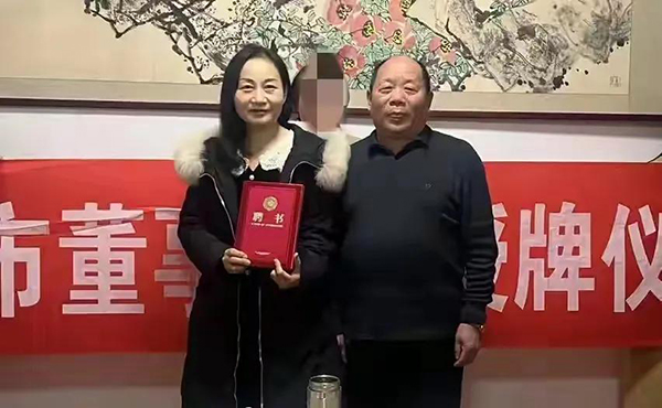 徐州上尋商業(yè)管理有限公司法定代表人張前先生被授予董事學(xué)會(huì)會(huì)員,監(jiān)事長張桂英代表學(xué)會(huì)為張前先生授牌。