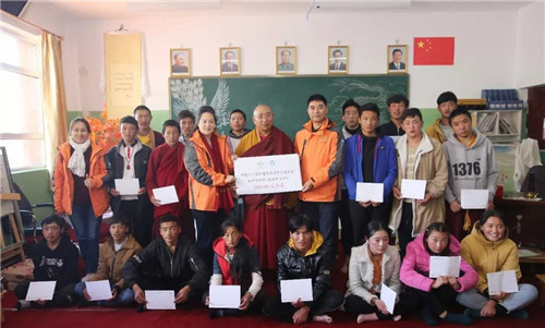而他們都是來自周邊貧困山區(qū),有單親家庭孩子也有孤兒;學(xué)校免費(fèi)培養(yǎng)、負(fù)責(zé)他們的學(xué)習(xí)和生活。參觀了學(xué)校以及唐卡專業(yè)班、充分了解了學(xué)校情況、學(xué)生情況;并將學(xué)校設(shè)立為中國(guó)人口福利基金會(huì)唐卡公益基金唐卡傳承基地;將來,中國(guó)人口福利基金會(huì)唐卡公益基金將通過“雪域助學(xué)”千人幫扶計(jì)劃公益項(xiàng)目讓這里的學(xué)生們完成唐卡學(xué)業(yè),幫助他們獲得一技之長(zhǎng),脫離貧困。同時(shí)也為孩子們帶去了來自社會(huì)各界愛心人士的愛心物資和愛心助學(xué)金,讓孩子們能夠繼續(xù)學(xué)習(xí)繪畫唐卡。