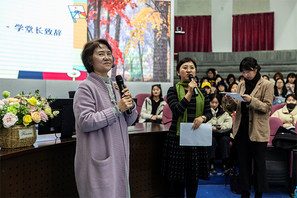 2019年11月22日,大連世宗學(xué)堂中韓文化慶典在日語學(xué)院同聲傳譯講堂成功召開,大連世宗學(xué)堂權(quán)英美學(xué)堂長為本次活動(dòng)致歡迎詞。